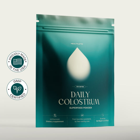 Healthleticâ„¢ Daily Colostrum restores gut health, boosts immunity, builds lean muscle, and enhances energy. Grass-fed, 3rd-party tested, USA made.