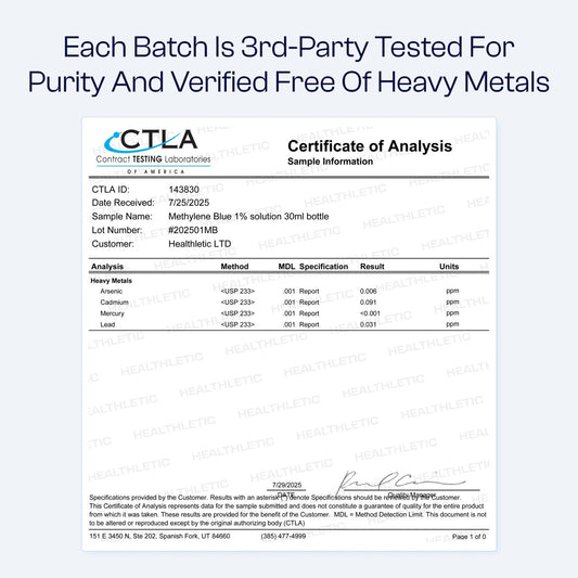 Boost focus, energy, memory, and mood with a science-backed, 3rd party tested Methylene Blue 1% formula