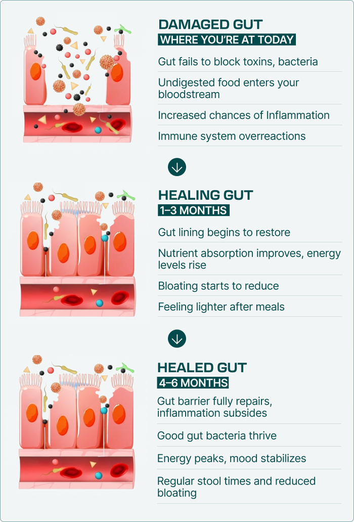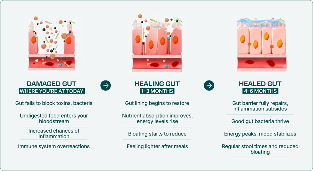 Consistency is key. Healing your gut takes time, and daily use ensures steady progress toward better digestion, energy, and overall health.
