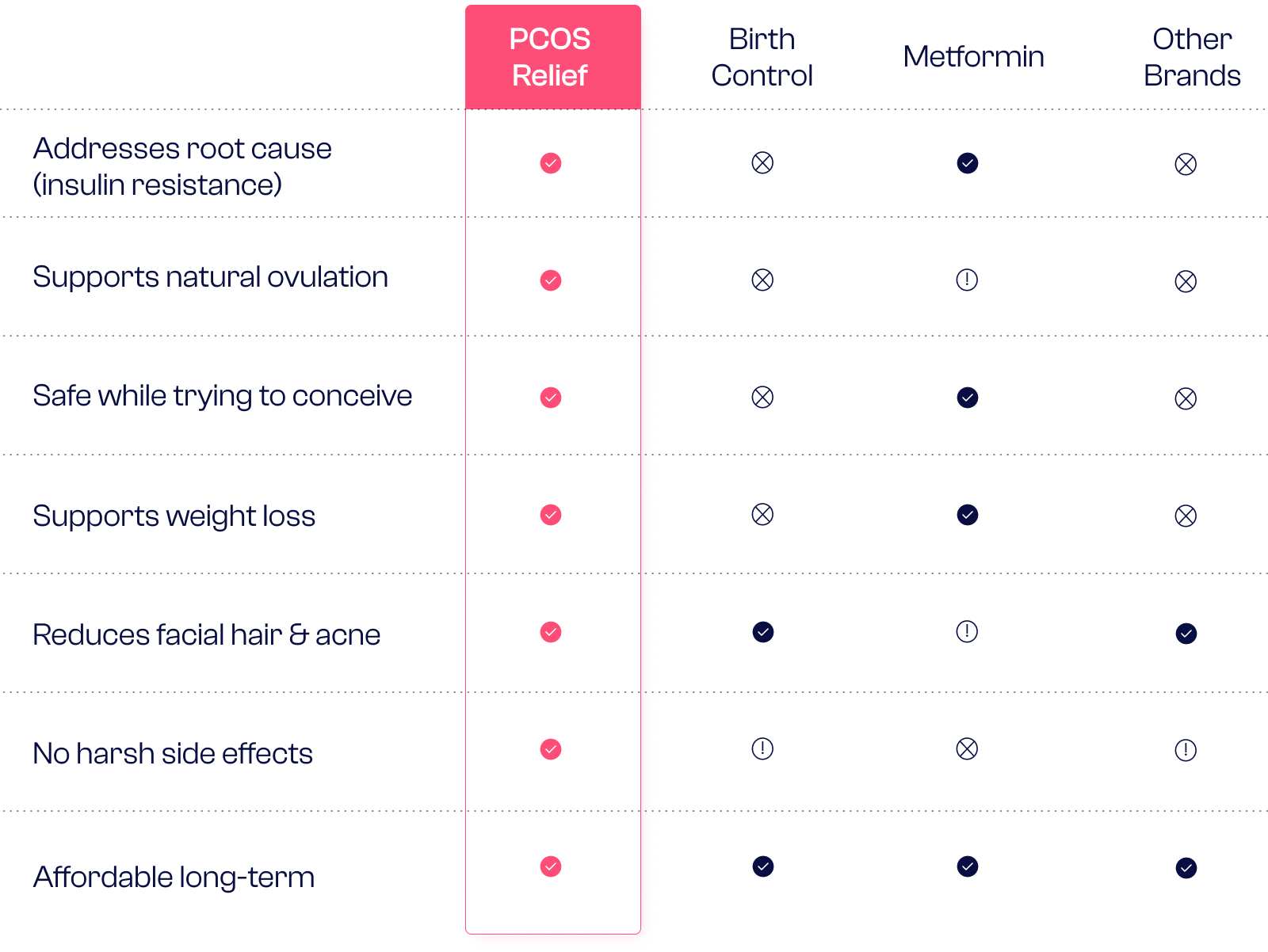 PCOS Relief uses Myo/D-Chiro Inositol (40:1) to support ovarian insulin signaling and healthy follicle development, helping your body ovulate consistently and restore fertility.